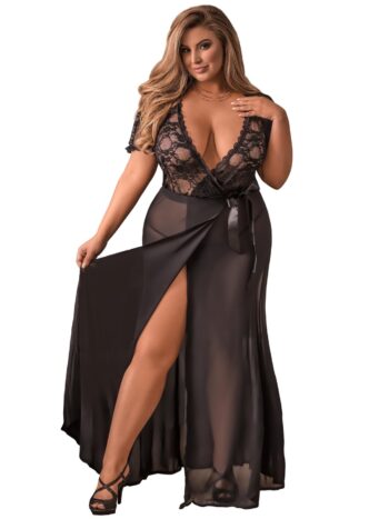 Fantasy Costume Plus Size Classic Sexy Lace Spliced Lingerie Set, 4pcs